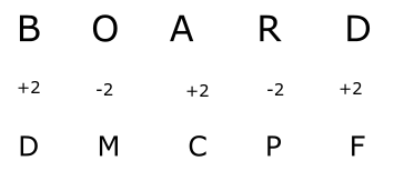 In certain code language “BOARD” is written as “DMCPF”. Then what is the code for the word “VIDEO”?