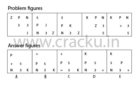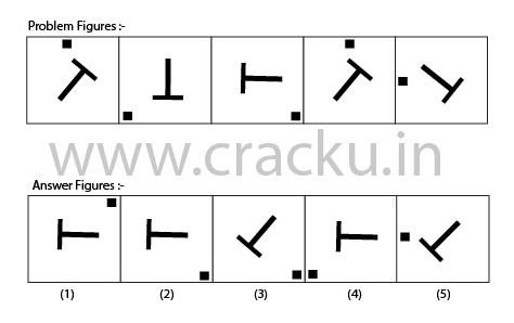 In each of the following questions, there are five problem figures and five answer figures. Problem figures have a pattern. A series is established if one of the answer figures is placed in the question marked space. You have to determine which answer figure best suits the question marked space.