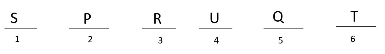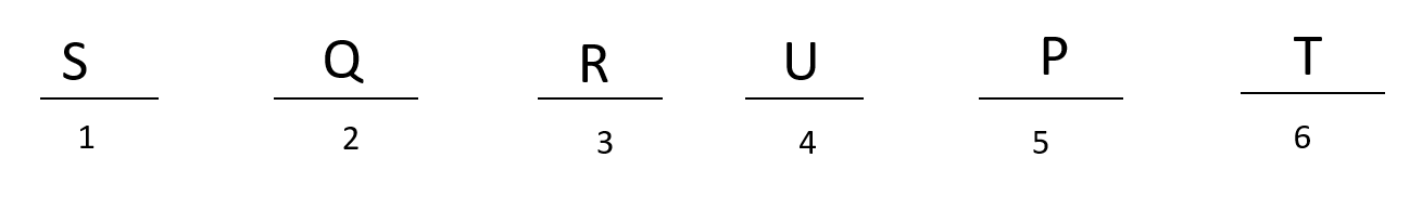 Six friends - P, Q, R, S, T, and U, not necessarily in the same order are standing in a line, facing north. There are as many people between U and S as there are between R and T. S and T are not neighbors. R sits second to the right of S. U and R are neighbors. T sits at one of the ends. P and Q are not neighbors.