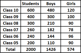 The table represents the data about the number of students studying in Delhi Public School. Further, it is known that a total of 2000 students are studying in the school from Class 5th to Class 10th.