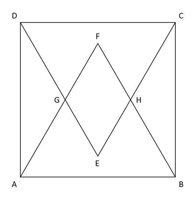 ABCD is a square. AFB and CED are equilateral triangles drawn on the side AB and CD respectively. They intersect at the points G and H as shown in the figure. Find the ratio of area of EGFH to area of ABCD?