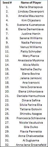 If the top eight seeds make it to the quarterfinals, then who, amongst the players listed below, would definitely not play against Maria Sharapova in the final, in case Sharapova reaches the final?