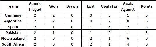 The year was 2006. All six teams in Pool A of World Cup hockey, play each other exactly once.